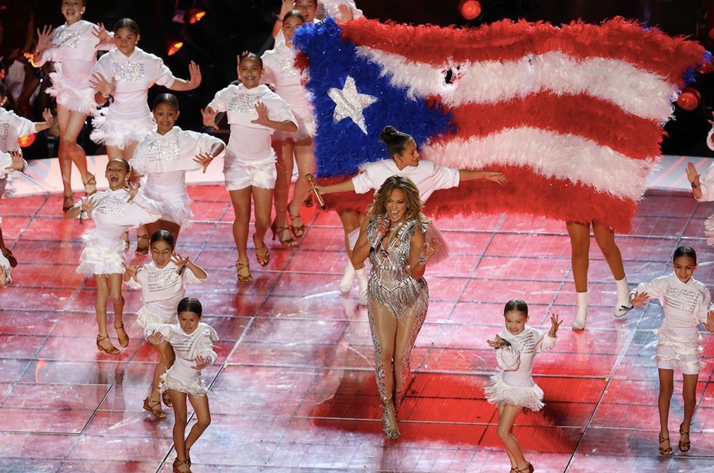 NBC News reports: “Jennifer Lopez and daughter Emme Maribel Muñiz perform in front of a Puerto Rican flag displayed on stage during the Pepsi Super Bowl LIV Halftime Show.” MORE: https://nbcnews.to/2GKb1RZ pic.twitter.com/DIPflR3i2y