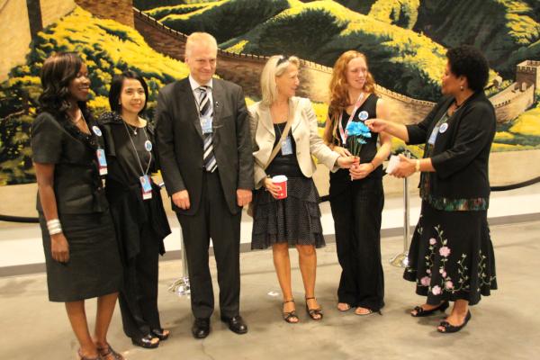 Norge mottar blomst fra @controlarms-aktivister for sin innsats for å inkludere kjønnsbasert vold i Arms Trade Treatypic.twitter.com/52y4zUke