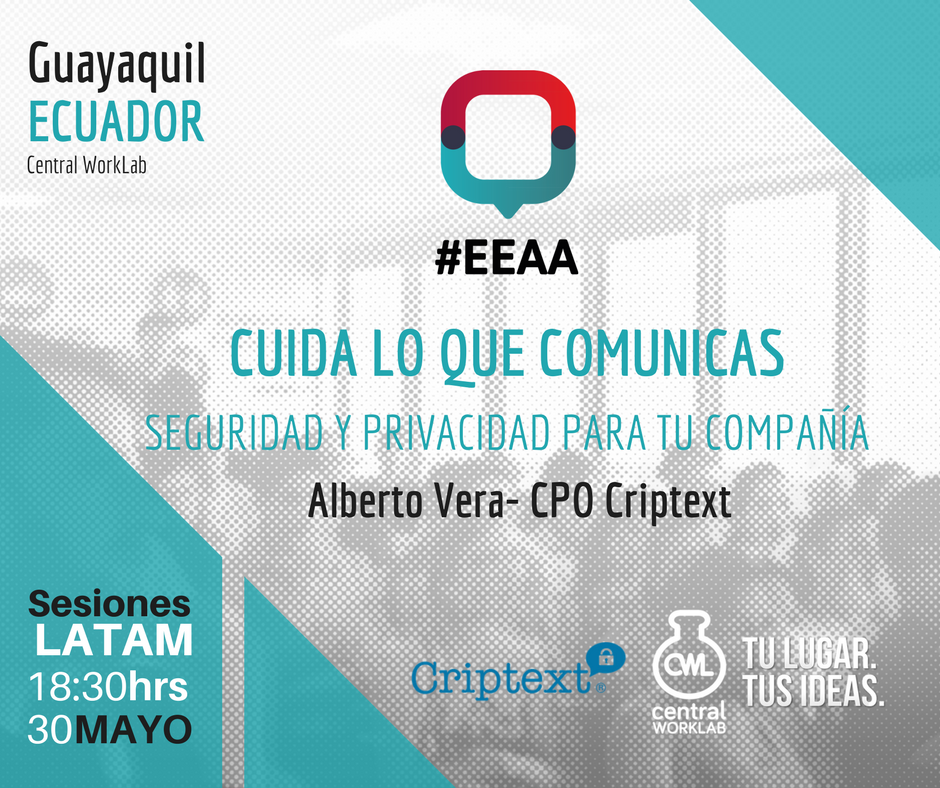 #emprendedores de#Guayaquil, Alberto Vera, CEO de@Criptext estará hoy en@cwl_ec enseñando sobre seguridad en el envío de mails.pic.twitter.com/RMWamk8DLk