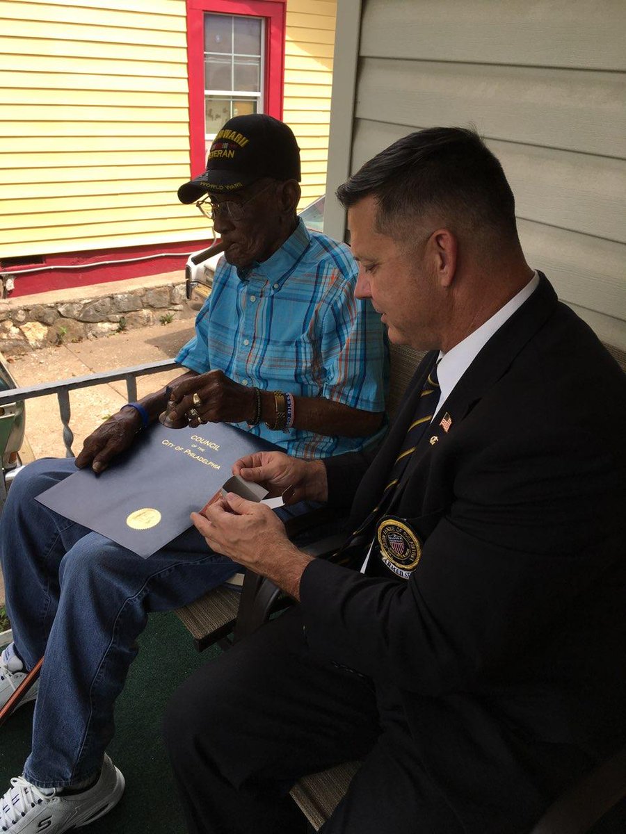 Happy 112th Birthday to WWII veteran Mr. Overton! Capt Lou Cavaliere and Andre McCoy presented a Philadelphia Citation and challenge coin to him in Texas recently to commemorate this monumental birthday...Thank you sir for your service and blessings for a beautiful year ahead.pic.twitter.com/XfvqZsntXR