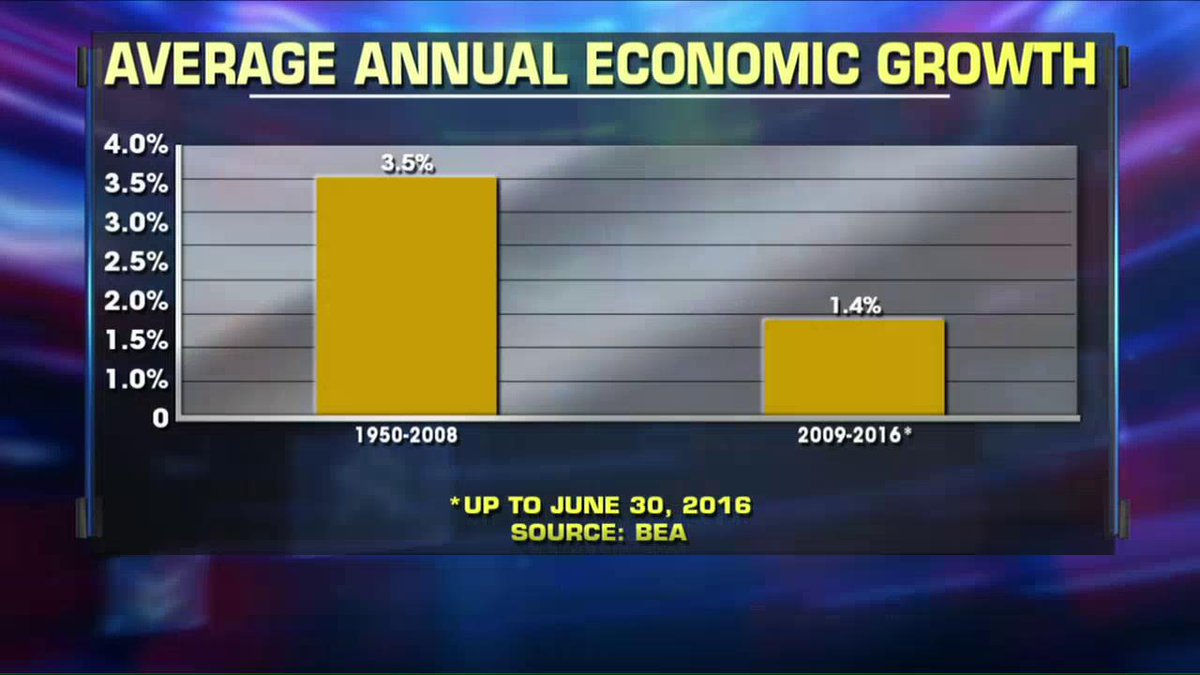 @ClimateQuotes@FoxNews Not too good with arithmetic. eh? Long-run GDP growth vs. last 7.5 years. What we're used to vs. what we have now. -