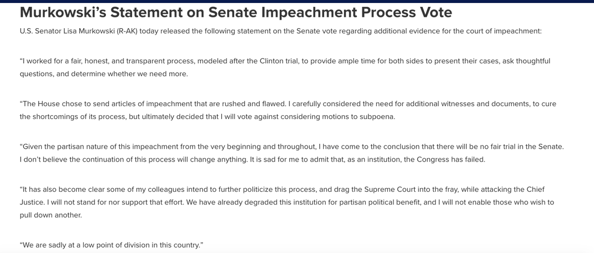 Murkowski's full statement on her no vote on witnesses.pic.twitter.com/mn9vRSnVdt