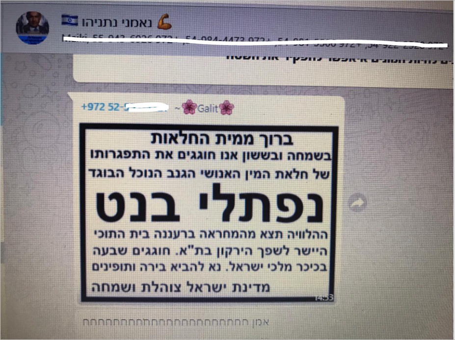 תגידו, "נאמני נתניהו" זו קבוצת ווטסאפ זניחה, לא? לא. בין החברים: השר לשעבר אלי כהן, ח"כ טלי פלוסקוב, ציפי חוטובלי, עמי מסיקה (ההוא שדקר את תמונת בנט ולפיד), ליאור הררי, מוטי קסטל וכמובן, אי אפשר בלי אורלי ("הביובית") לב. ליל מנוחהpic.twitter.com/hRBy5WhK51