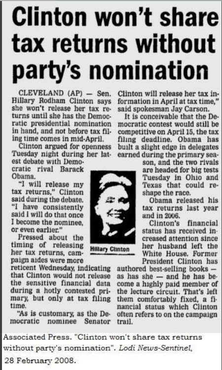 So did Hillary and she didn't release hers until July 2015, and back in 2008 had said she wouldn't release them unless she won the nomination.