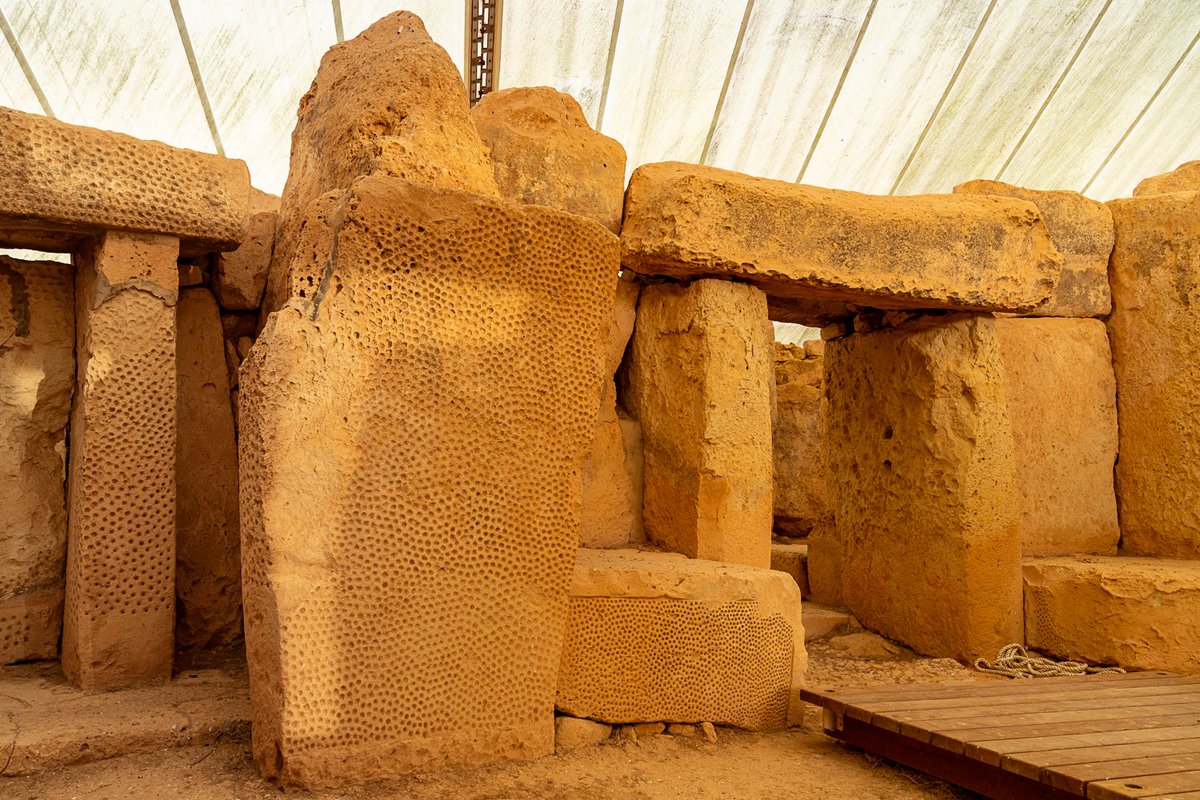 #Malta's Mnajdra temple. Just as it has for 5000 years, the rising sun shines through the entrance hall creating a bracket of light to mark#SummerSolstice. The bracket closes on an adjacent stone at winter solstice.@heritagemaltapic.twitter.com/HsGwjlnKOi