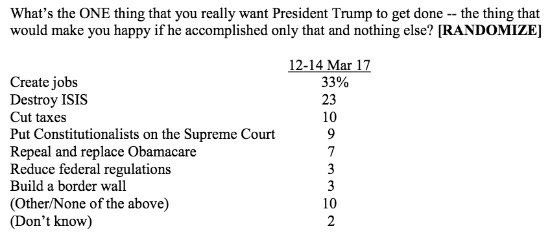 President Trump delivers a line that gets upward scores from both GOP- and Dem-leaning voters: “The only victories that matter in Washington are the ones that deliver victories for the American people.”