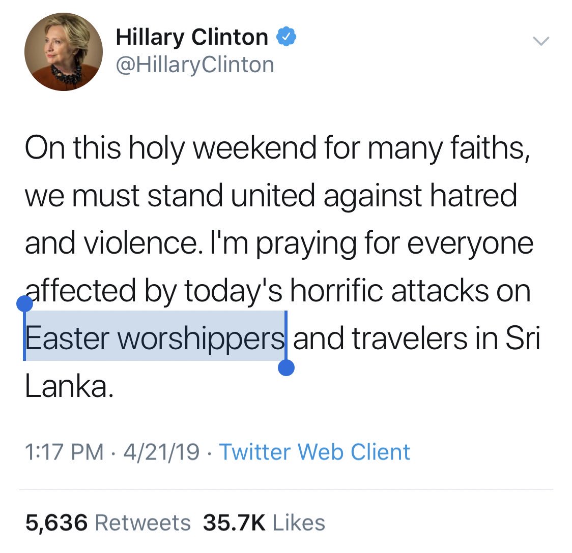 One might be more inclined to believe that your concerns were being expressed in good faith if you had also pointed out that Trump also failed to use the word "Christian" when talking about those attacked. https://twitter.com/realDonaldTrump/status/1119923840161857536 …