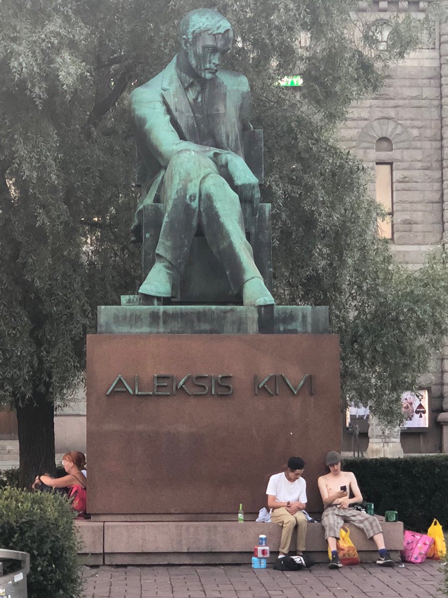 Statue honoring noted 19th century Finnish author Aleksis Kivi, who died in poverty at the age of 38 diagnosed with, among other maladies, melancholia resulting from "injured dignity as a writer.”pic.twitter.com/B2SBnkOzHh