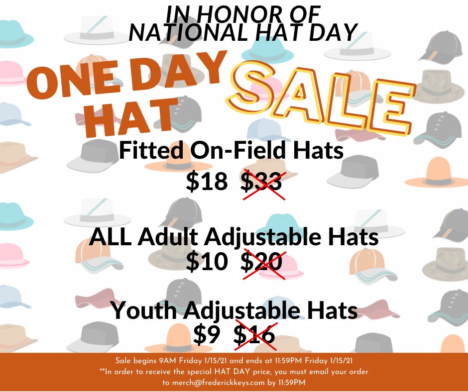 #nationalhatday? We have a ONE DAY hat special for our fans. All available hats can be found here: https://www.facebook.com/media/set/?vanity=FrederickKeys&set=a.10157711618972338 … Email merch@frederickkeys.com to take advantage of the lowest prices you'll likely ever see for Frederick Keys Hats! Offer ends at midnightpic.twitter.com/VFKn9Tb0yf