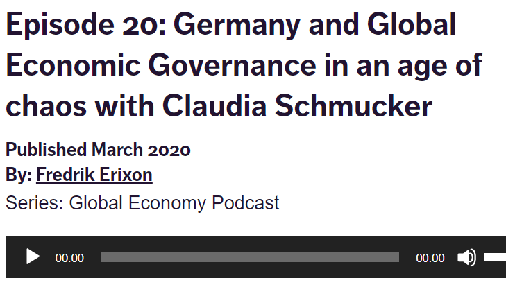 @FredrikErixon talks to Claudia Schmucker@dgapev about the#WTO,#G7,#G20 – and Germany’s perception about global economic developments