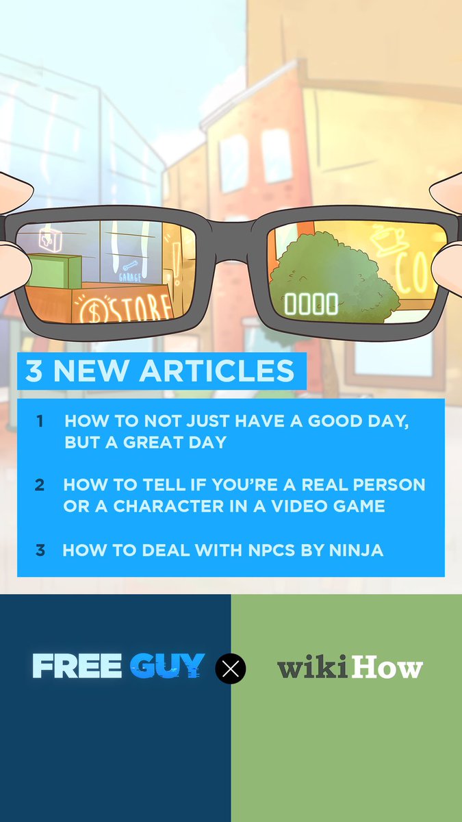 @wikiHow has the answers - How To Not Just Have a Good Day But a Great Day: https://bit.ly/HaveGreatDay - How to Tell If You’re Real or a Video Game Character: https://bit.ly/AreYouVideoGameCharacter … - How to Deal w/ NPCs by@Ninja: https://bit.ly/DealWithNPCs pic.twitter.com/CAYPeXKahc