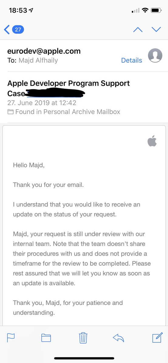 Anyone has previous experience with changing the address on their Apple Developer Account? I’ve a support ticket to change my address which has been in progress since 3 months and support can’t provide any updates on the status of the request. Does it usually take this long?pic.twitter.com/dIrOLPG45Y