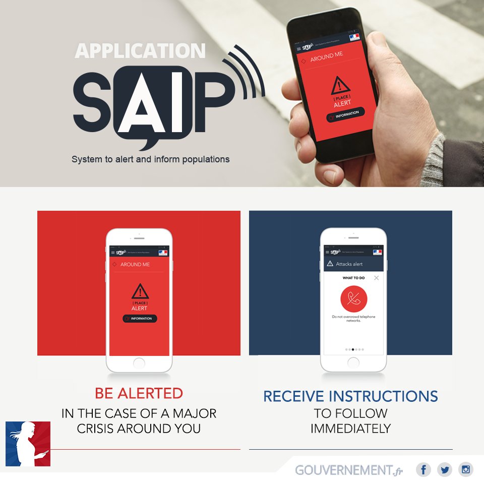 📱 Download the #SAIP app to be alerted in the case of a major crisis https://itunes.apple.com/en/app/saip/id1116703676?mt=8 … https://play.google.com/store/apps/details?id=com.deveryware.saip&hl=en …pic.twitter.com/H4IoOCAeA2