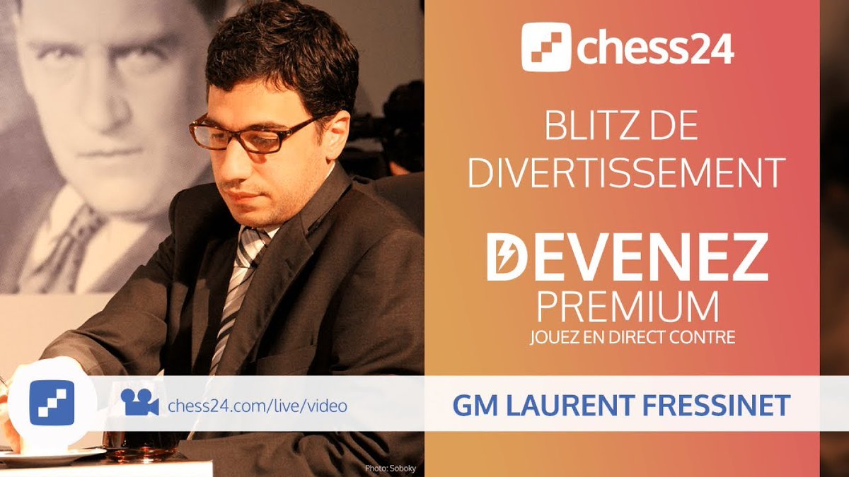 @FressinetL va jouer un Blitz de Divertissement contre nos membres Premium... uniquement à l'aveugle ! C'est la première session d'une série spectaculaire. L'objectif : passer 3000 Elo ! https://chess24.com/fr/live/video/blitz-a-l-aveugle-avec-le-gmi-laurent-fressinet …pic.twitter.com/QPkvvJxdSI