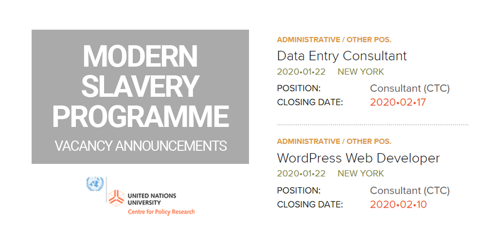 We are seeking a Data Entry Consultant and a part-time WordPress Web Developer to join our Modern Slavery Programme.