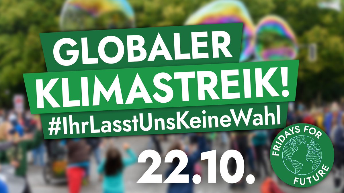 #IhrLasstUnsKeineWahl! Keine Koalition wird von allein 1,5°C-Politik machen. Deshalb sind wir mit dem Bündnis@GerechtigkJetzt vom 20. bis 29.10. in Berlin auf den Straßen.