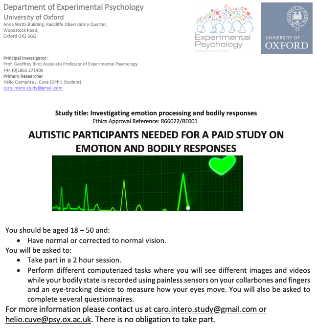 #autistic people to help my#Oxford#PhD research on how emotional scenes influence bodily responses and eye-movements.