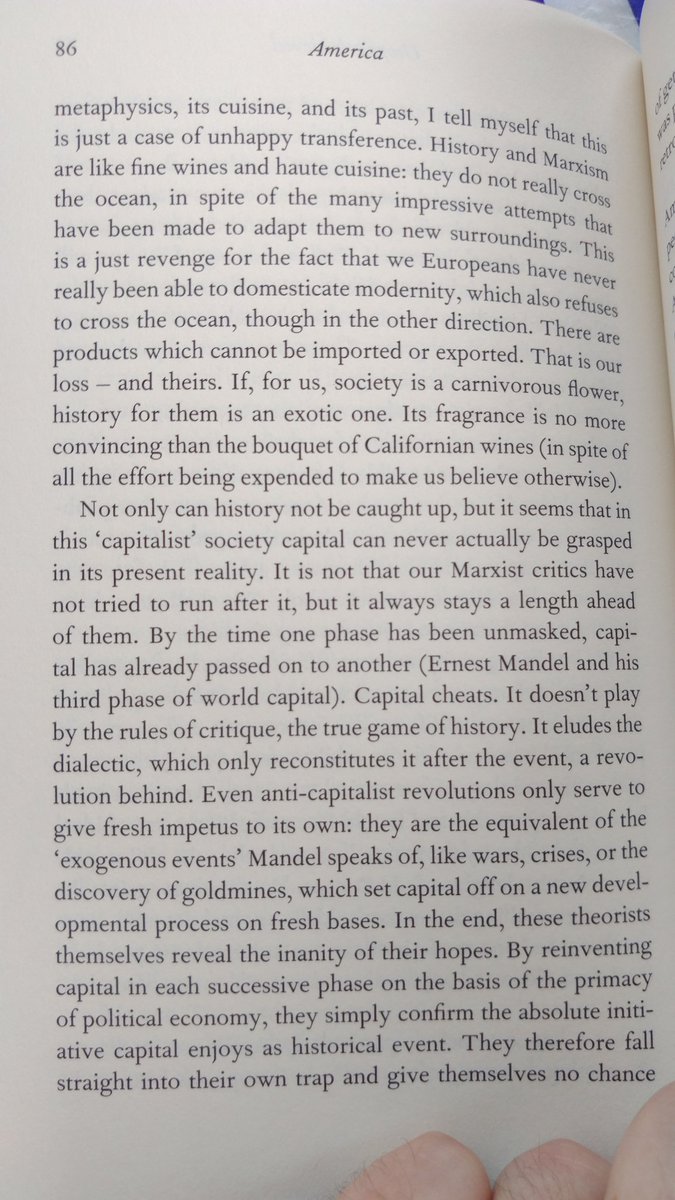 Baudrillard on the chasm which separates America from Europe and Accelerationist musings.pic.twitter.com/38sbugeVxh