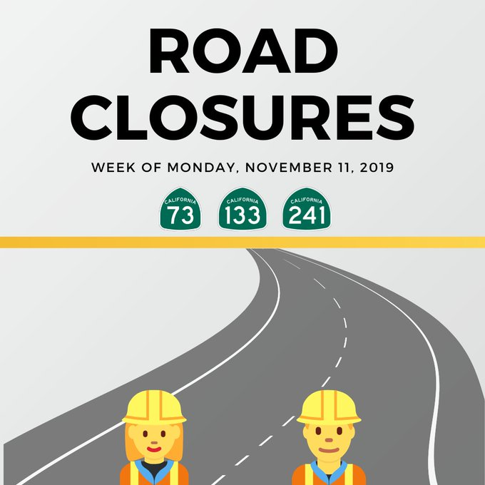 There are multiple closures on The Toll Roads this week. Please visit http://TheTollRoads.com/closures for a detailed list of closures, detours, dates & times.pic.twitter.com/aXvj19GKmg
