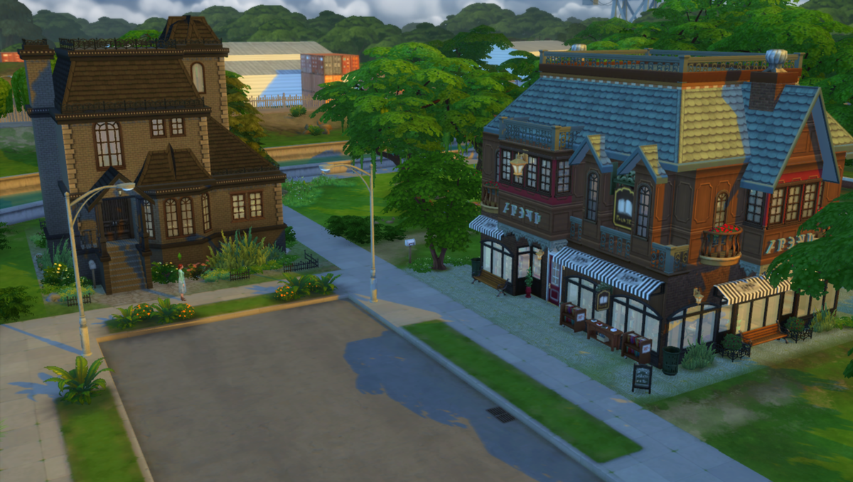 Playing #thesims4 instead of building.Miss Hemingway moved into the abandoned greystone Villa+owns the old bookstore.pic.twitter.com/y0o2udcjxS