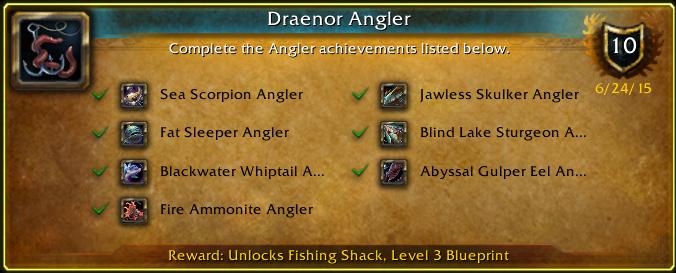 I just earned the [Draenor Angler] Achievement! #Warcraft - Finally decided it was time to chase a few more fish....pic.twitter.com/UYuA1hKlqf