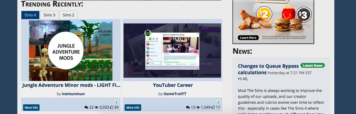 MADE IT TO TRENDING ON MOD THE SIMS! THIS IS AWESOME! Thanks to everyone who is trying out my mod.pic.twitter.com/lzPJ5GhPWR