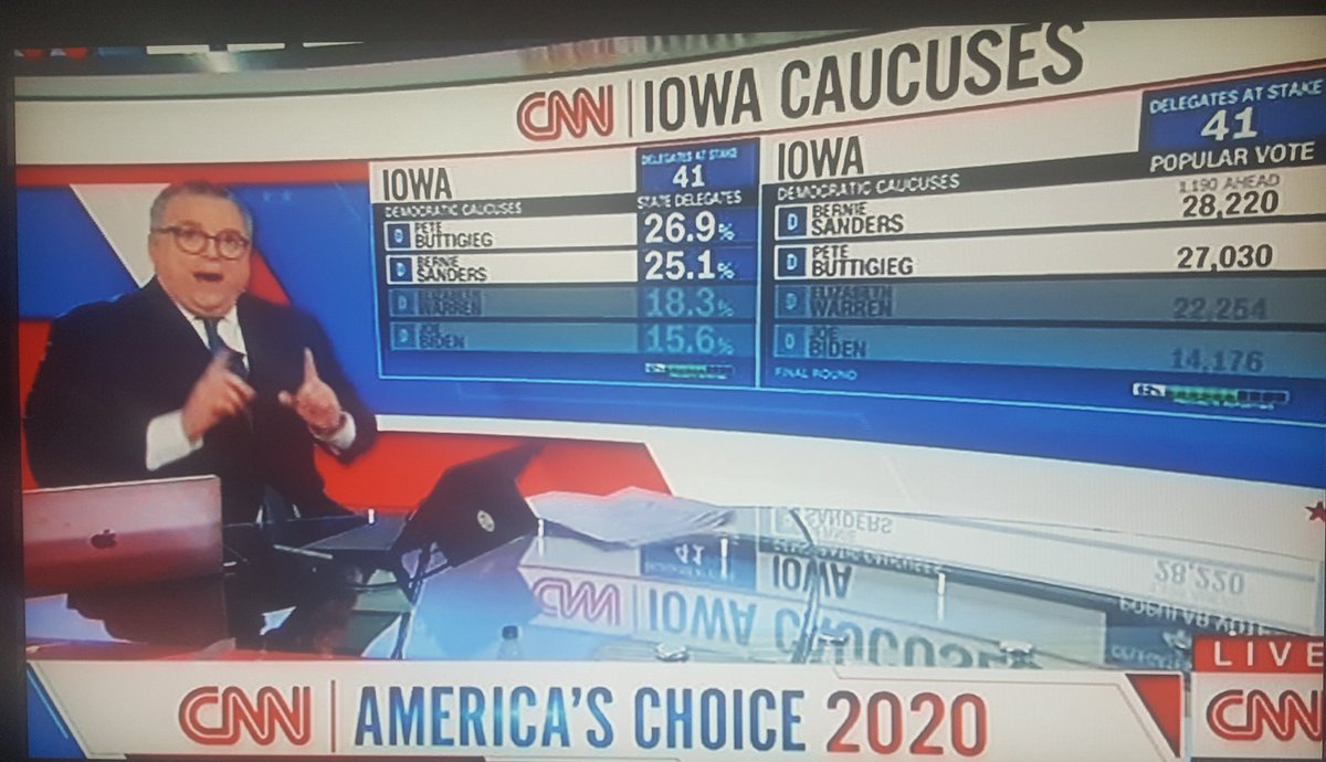 With the incomplete results released, Sanders has more votes than Buttigieg but Buttigieg has more delegates. I have a feeling that the people who spent the last 4 years complaining about how unfair & undemocratic such outcomes are won’t be quite as angry about this.