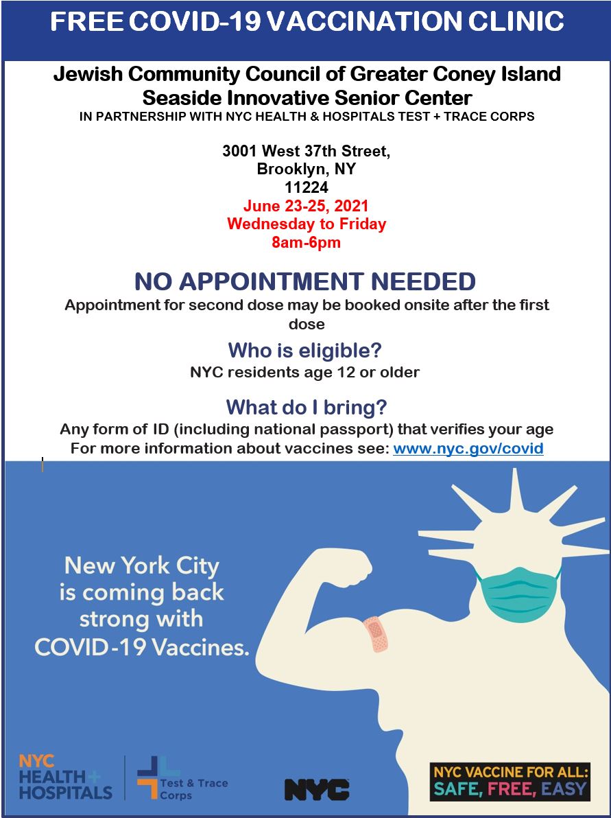 A Mobile Vax Site will be in Coney Island at 3001 West 37th St from (6/23) Wednesday to (6/25) Friday. It's free & no appointment is needed! Open to everyone 12 & over! Come on down!