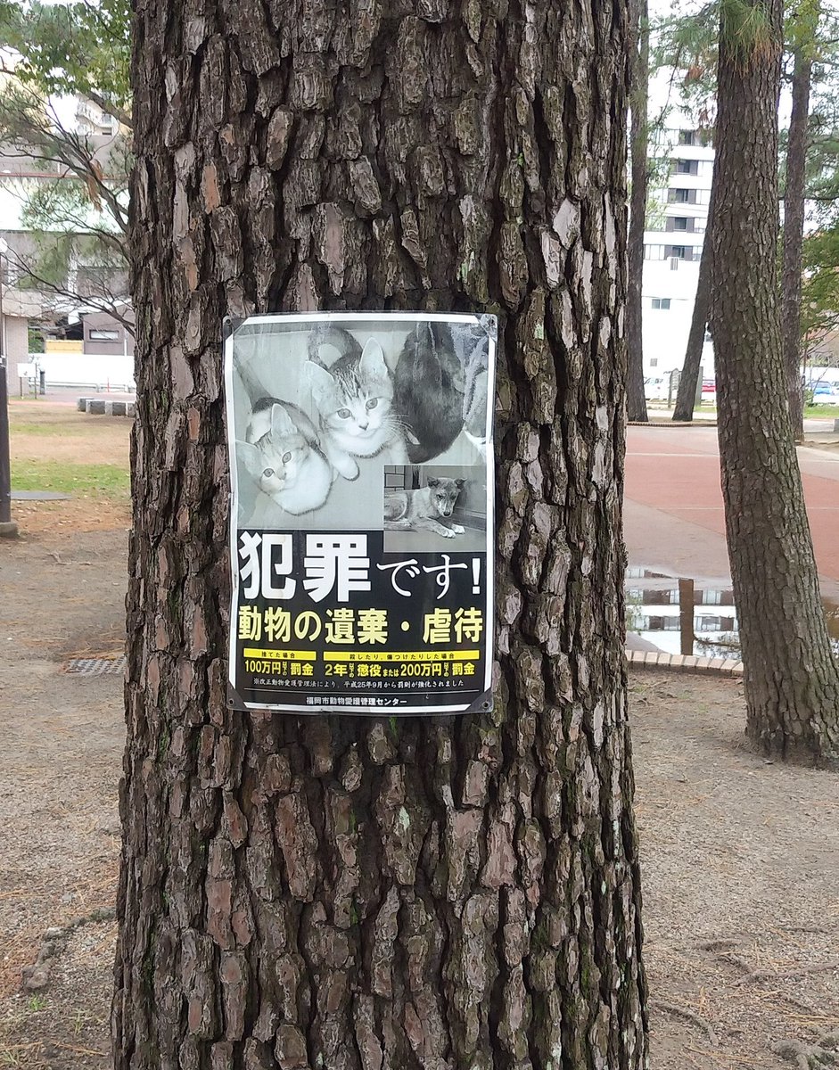 コメント失礼します。 つい,先日山王公園(博多区)でこのような貼り紙を見かけました。良い注意喚起になると思いました。pic.twitter.com/jignOuAOHg