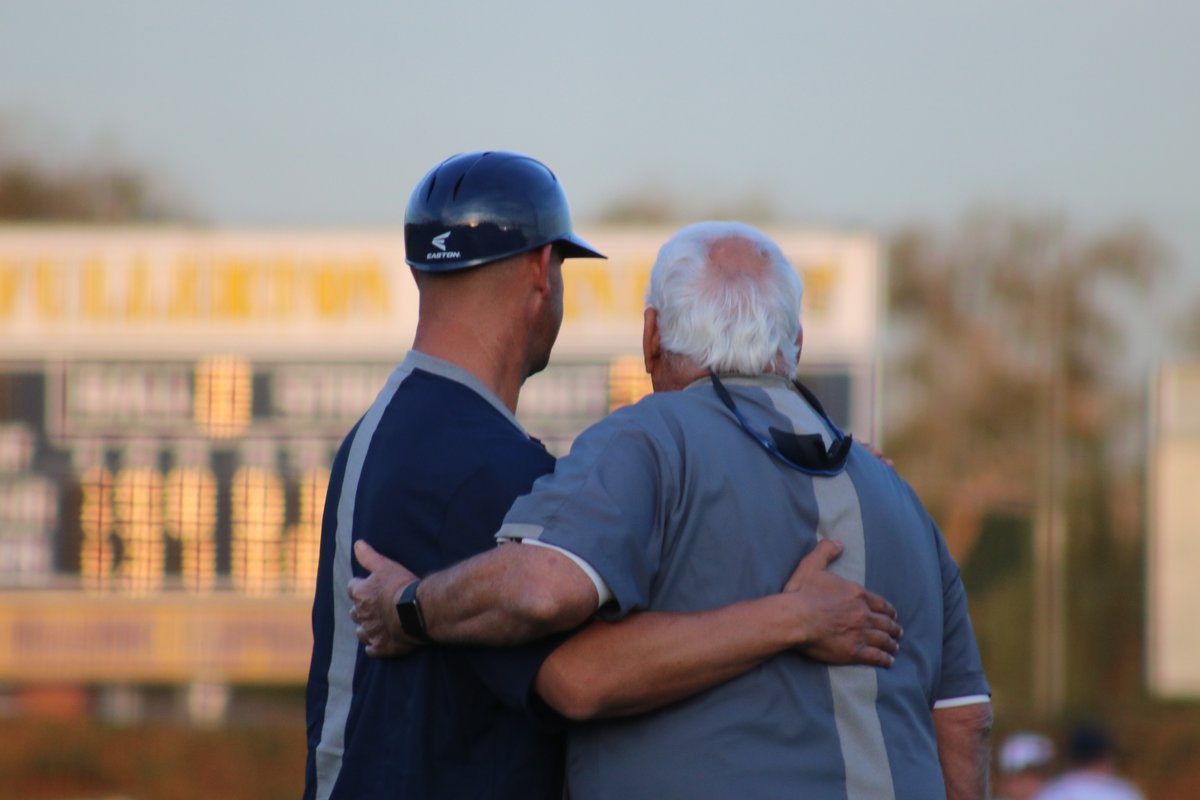 Baseball: Mt. San Jacinto 5, Fullerton 7 (Final) Congrats to Coach Baum for earning his first career victory as a Hornet! Coach Fuscardo hands off the torch.