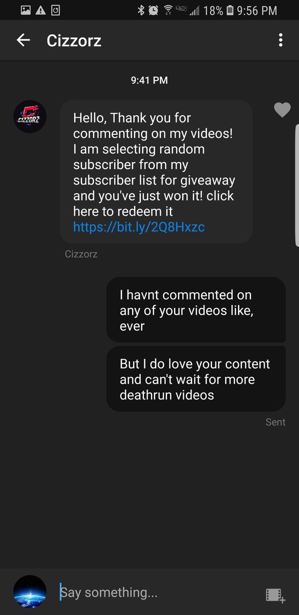@cizzorz I know this isnt actually you but its so fun to do stuff like this when scammers impersonate someone. But like foreal @TeamYouTube needs to fix this like its badpic.twitter.com/P5HtIg0upZ