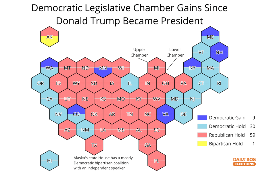 Since Trump was first elected, Democrats have now flipped nine state legislative chambers and haven’t lost a single one. https://www.dailykos.com/stories/2019/11/14/1899245/-Morning-Digest-With-Virginia-win-Democrats-have-flipped-nine-legislative-chambers-in-the-Trump-era … pic.twitter.com/dOxJ7TLidq
