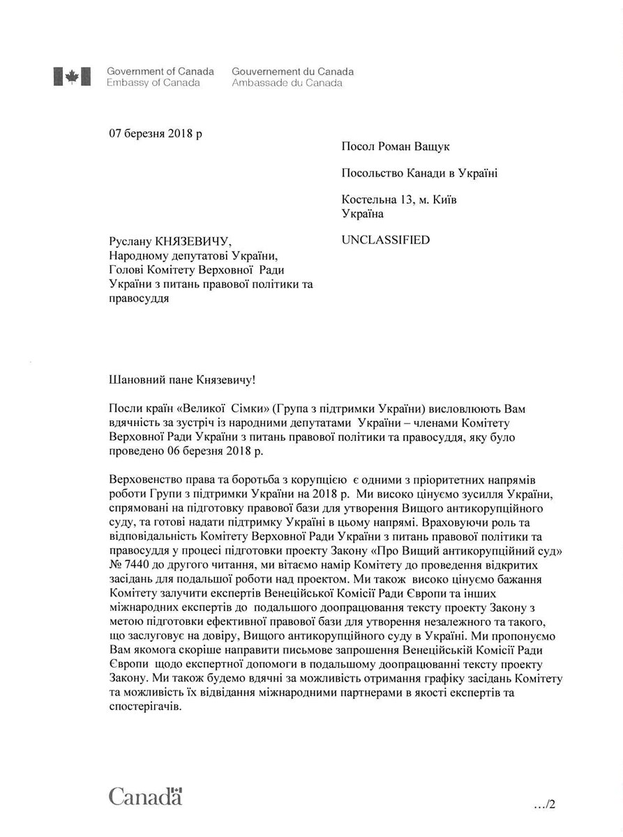 Посли країн «Великої сімки» були раді можливості зустрітися з Комітетом #Ради з правової політики та правосуддя та обговорити найкращі шляхи доопрацювання проекту закону про #АнтикорупційнийСуд. Оцінили відкритість до запрошення Венеційської Комісії до роботи над поправками.pic.twitter.com/BVDcYcq5WL