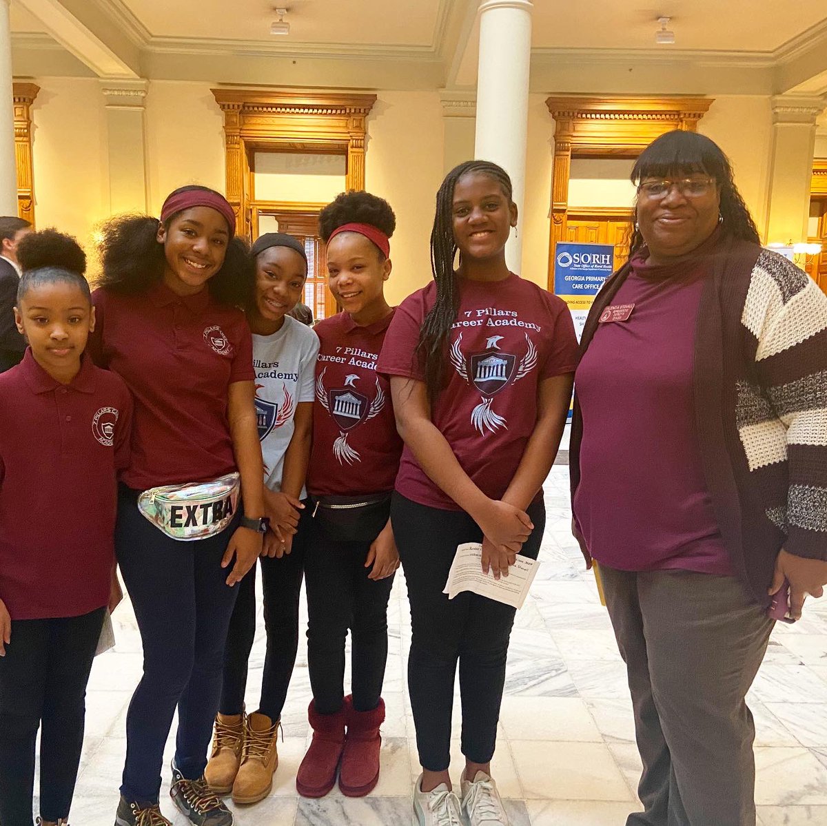 7 Pillars Career Academy (@pillars_7) came to advocate for themselves on the steps of the state capitol with @StateRepRhondaB and Rep. Sandra Scott, and strike a pose with @ValenciaStovall! #gacharters #charterequitypic.twitter.com/629WXTwmhs