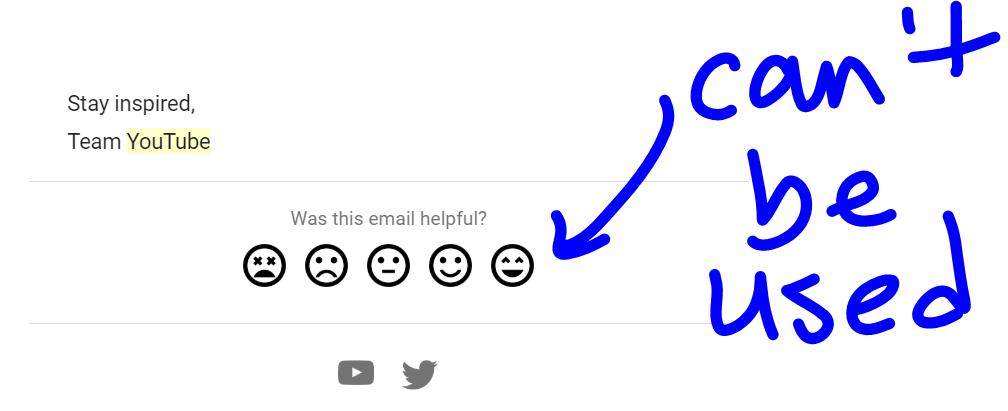 they have a feedback option dealie, but it goes nowhere because it says wrong email. Problem is brand accounts have a "fake" email that you can't actually log into. So, i feel like @TeamYouTube probably should work on that...pic.twitter.com/OeMkIMA12c