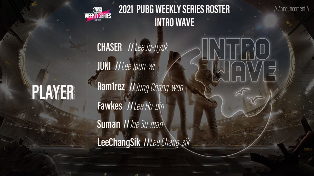 안녕하세요 INTRO WAVE 입니다 새로운 게임팀을 발표 하겠습니다. 오늘부터 정식적으로 활동하게될 배틀그라운드 팀입니다. CHASER, JUNI, Ram1rez, Fawkes, Suman, LeeChangSik 총 6명 선수가 같이 활동하게 되었습니다. 많은 응원 부탁드리겠습다. 감사합니다.pic.twitter.com/1oG4GyBKMo