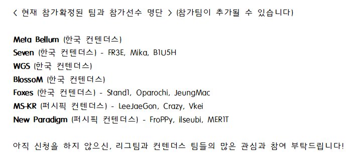 <지부웨를 이겨라! 루시우볼대회에 대한 추가공지 2 > 참가팀이 총 8팀을 넘어 토너먼트 방식으로 진행합니다. 참가를 추가 희망하신 팀과 선수들 명단을 업데이트합니다. 오늘 방송 후원금은 다음주 오픈디비전 팀 대상의 깃발뺏기대회 우승팀에게 활동비로 지급합니다. #지부웨 #루시우볼 #부산맵pic.twitter.com/x65SSSf88D