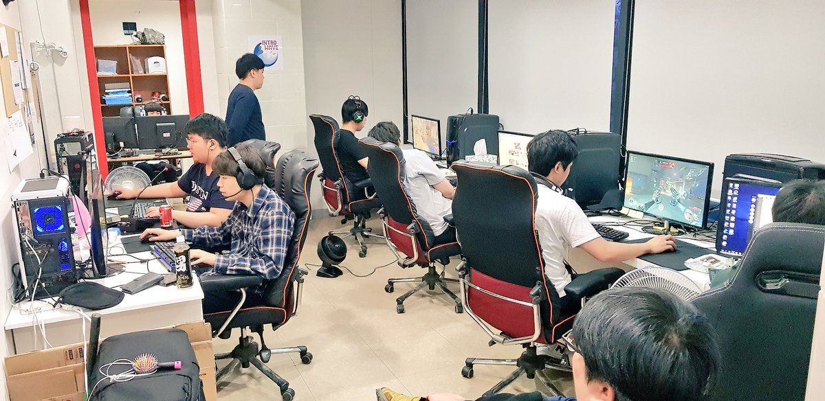 FatCat의 멤버였던 DPS와 이번 모집으로 선발된 새로운 멤버들이 지난 주말에 팀 연습실과 숙소에 왔었습니다. 서서 관전중이신 Mentalist 코치님, Ritz 옆에서 게임중인 ION, 왼쪽 끝에 있는 코칭룸에 암살교과서, 오른쪽 하단에 관전중인 DPS, 그리고 INTRO WAVE 팀원들의 모습입니다. 다 모였네요!pic.twitter.com/sSOTLQItoO