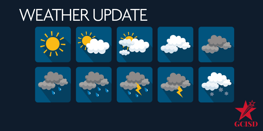 As the safety of all students and staff is a top priority in GCISD, we will continue to monitor the weather over the next 24 hours and will communicate any potential delays as early as possible.pic.twitter.com/73ys8JyWmX