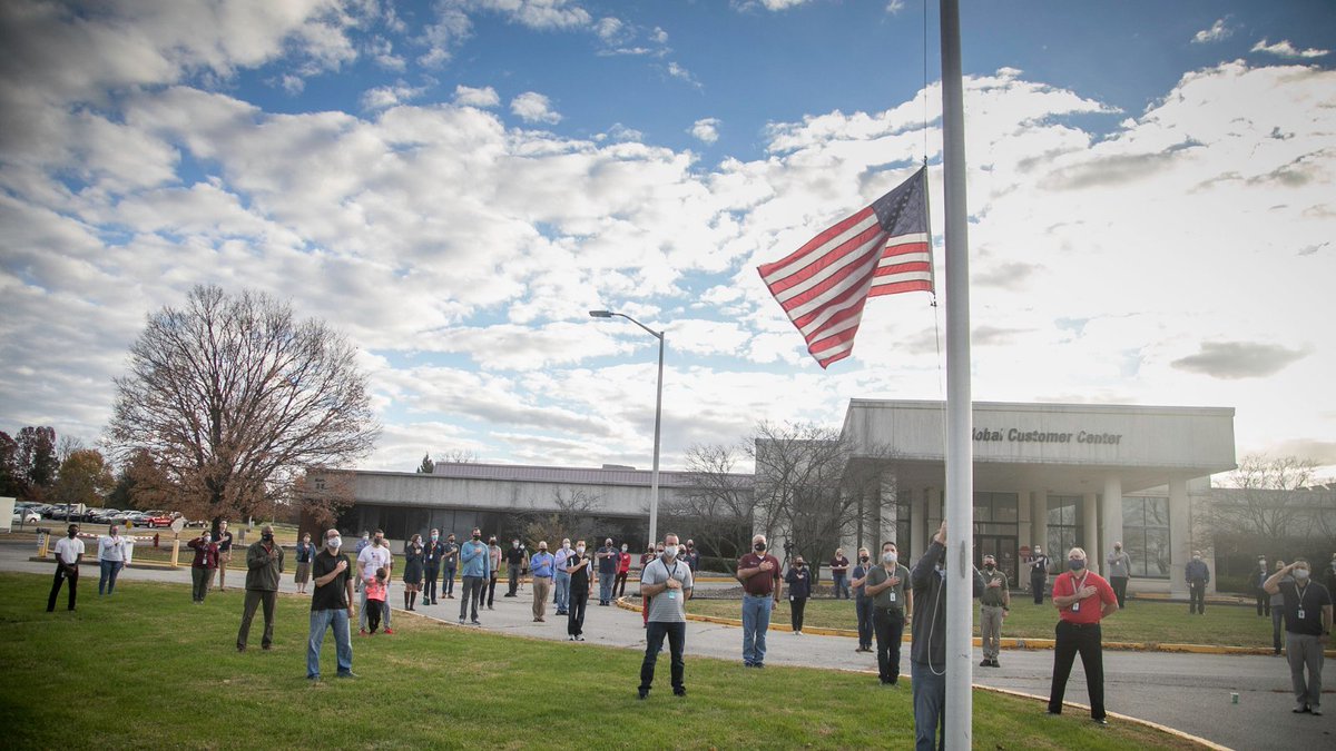 : In honor of #VeteransDay, we hosted a flag-raising ceremony at Appliance Park today to recognize employees who have and are still proudly serving our country. We work alongside more than 350 military veterans and we appreciate their service!