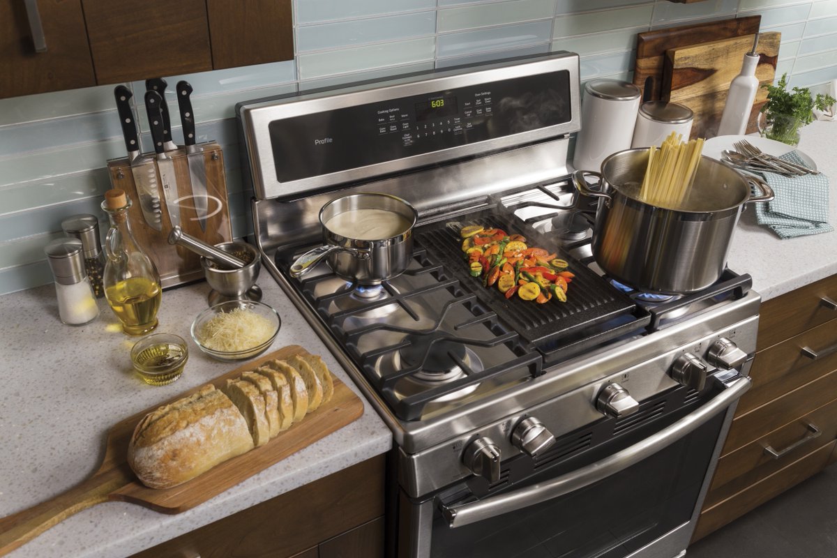 A gas range that accommodates round and oval cookware, plus an integrated griddle. Edge-to-edge is the way to go. http://ow.ly/Tgix300fy3M pic.twitter.com/RPyzKxYNAF