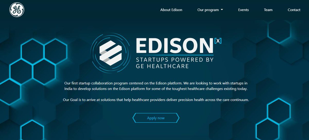 Applications open for @GEHC_EdisonX - startups powered by GE Healthcare. Apply here - http://startups.gehc.co/