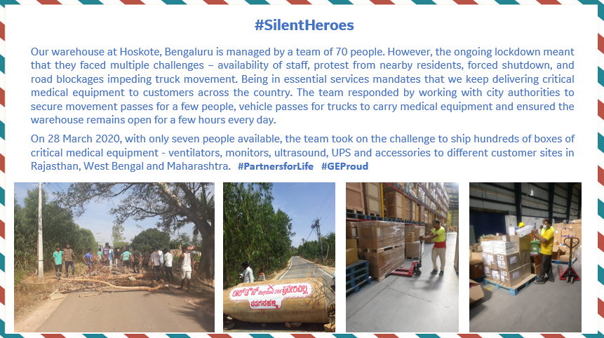 #SilentHeroes: With only 7 people, the team took on the challenge to ship hundreds of boxes of critical medical equipment - ventilators, monitors, ultrasound, UPS and accessories to different customer sites in Rajasthan, West Bengal and Maharashtra. #PartnersforLife #GEProudpic.twitter.com/m8JlrHOCYC
