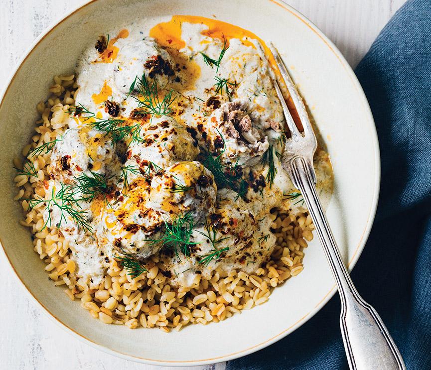Lamb Meatballs in Warm Yogurt Sauce with Red-Pepper Butter