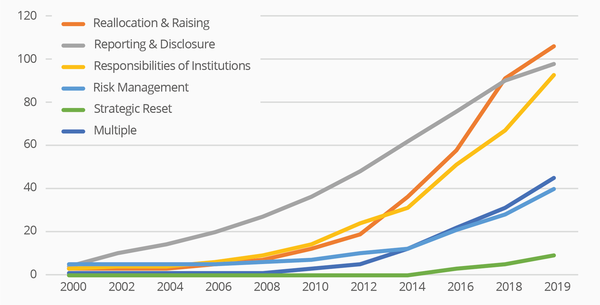 In 2019, financial policies & regulations to promote the capital allocation to green sectors were the most represented measures globally.