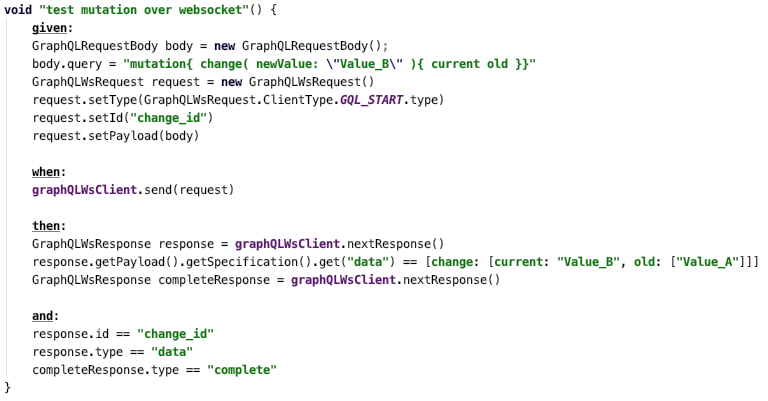 Just added test for GraphQL mutation over websocket. It would look so much more messy using Junit.