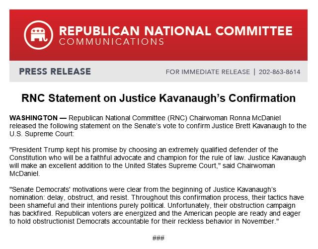 NOS congratula la ratificación del Juez Kavanagh a la Corte Suprema. Felicitaciones a los estadounidenses, republicanos y equipo liderado por el presidente Donald Trump. Díos Todopoderoso bendiga siempre a América toda y el mundo.