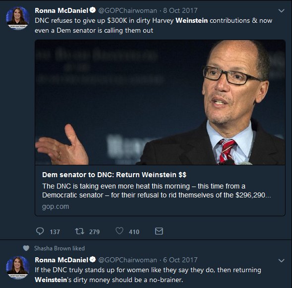 It's been much longer since ex-GOP finance chair Steve Wynn raped women and you still refuse to give back his money.https://twitter.com/TheLoveBel0w/status/982371224176259072 …