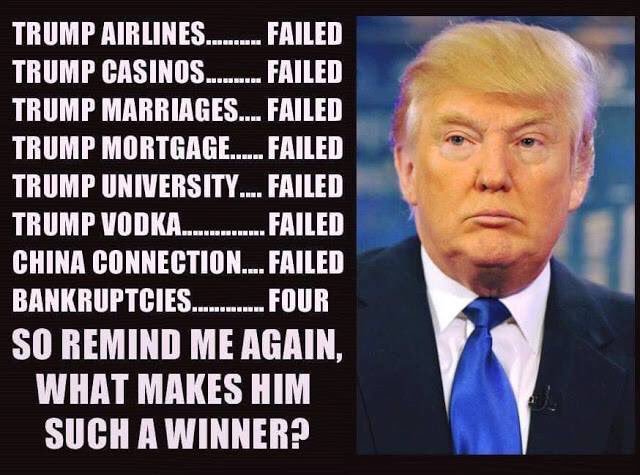 He bankrupted five entities. He was sued for fraud multiple times. If you call that success, you must believe s failed businessman would make a good president.