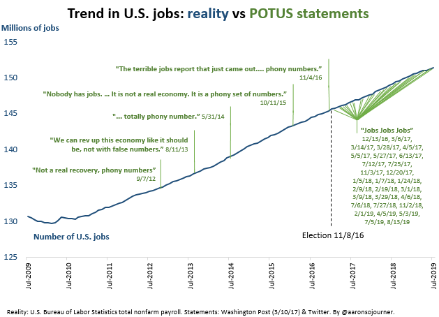 POTUS changed his talking point. The job-growth trend, not so much. The administration was born on third base &